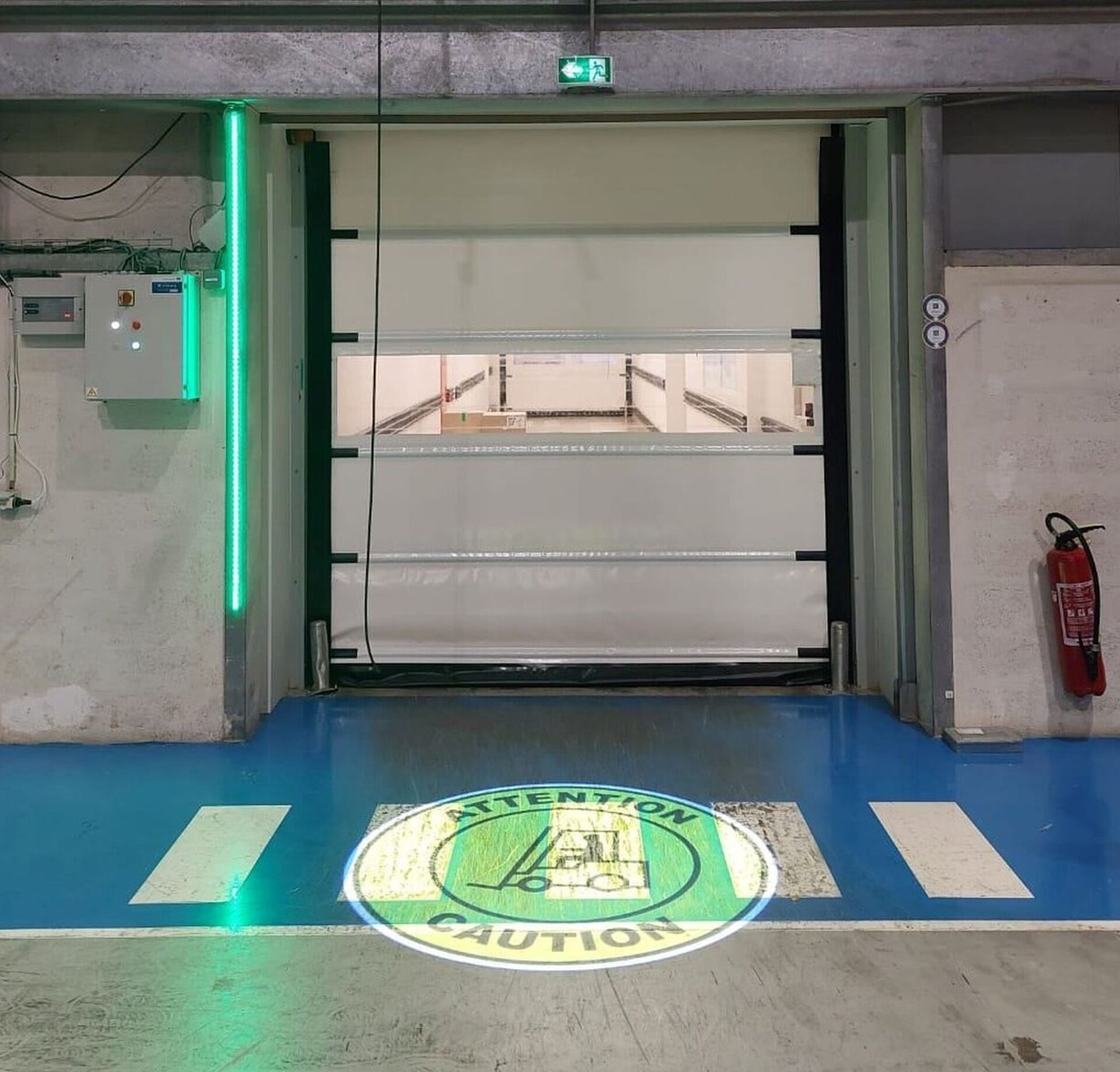 Cette technologie consiste à projeter des pictogrammes lumineux ou des lignes de signalisation directement au sol, sans altérer les surfaces. Contrairement aux marquages traditionnels, le marquage LED reste visible quelles que soient les conditions de luminosité et ne s’efface pas avec le temps. Il est particulièrement adapté aux environnements stériles où la peinture ou les adhésifs peuvent poser des problèmes de contamination.
